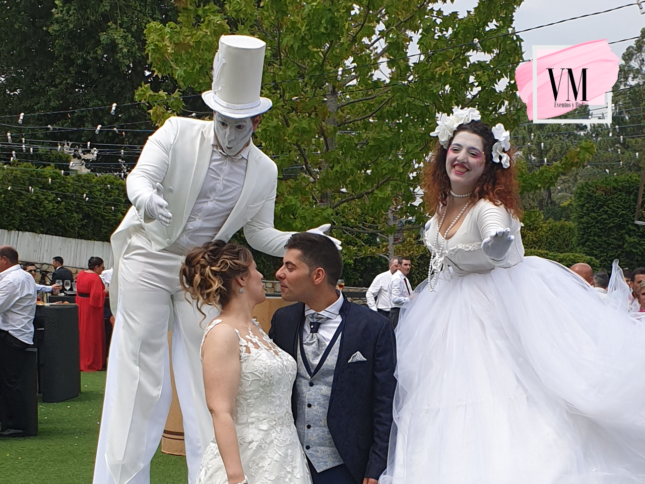 Disponemos photocall, fotomatón, zancudos, saxofonistas, animadores infantiles… que harán de los tiempos de espera, como la llegada de los novios al banquete, un momento divertido y alegre, además de una boda original e única